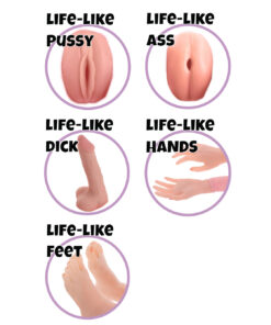 - Vagina e ânus penetráveis fabricados em material realista;