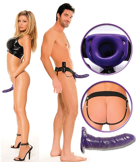 – Se o seu companheiro sofre de alguma dificuldade de erecção, ou que não ´dura` tanto quanto seria desejado, agora basta colocar-lhe esta cinta com pénis oco por cima do pénis flácido que ele estará pronto para mais uma ronda!