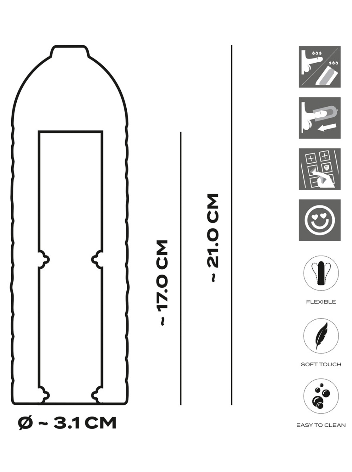 Totalmente flexível com toque sedoso, a manga performance tem anéis de estimulação para uma experiencia ainda mais intensa.