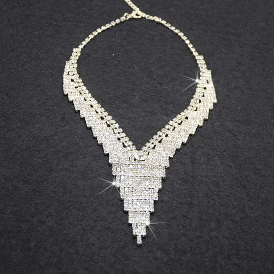 Gargantilha prateada com pedras brilhantes que garantem um brilho exuberante.