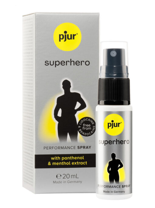 O Spray Retardante Pjur Super Hero Performance sem lidocaína ou benzocaína tem ingredientes ativos que são absorvidos pela camada superior da pele e podem prevenir a ejaculação precoce, permitindo-lhe assim prolongar as suas relações sexuais e oferecer ainda mais satisfação!