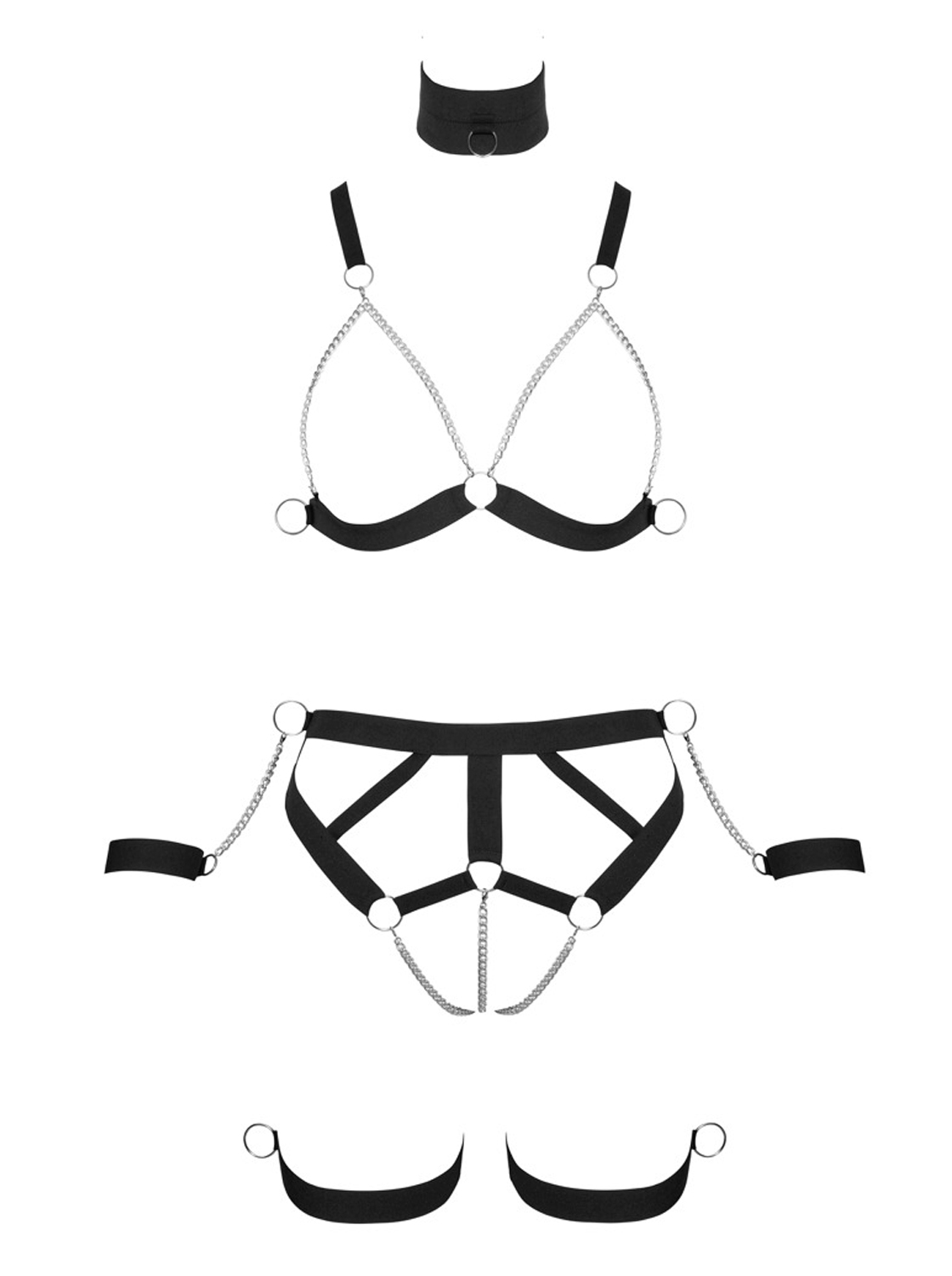 - Correntes Prateadas: Enquadram os seios expostos e estimulam a área da virilha.
