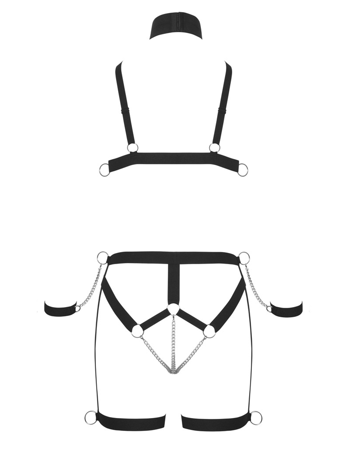 - Conjunto Completo: Inclui harness para peito e anca, colar e algemas;