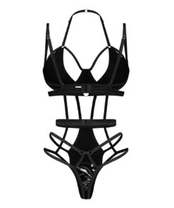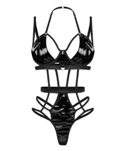 Este body de lingerie redefine a ousadia com o seu tecido tipo látex, trazendo um toque picante num cativante estilo wet-look. Ideal para quem procura combinar sensualidade e ousadia.