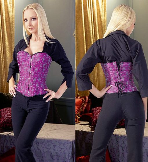 Fabuloso e requintado bustier de cor lilás com lindos bordados de flores.