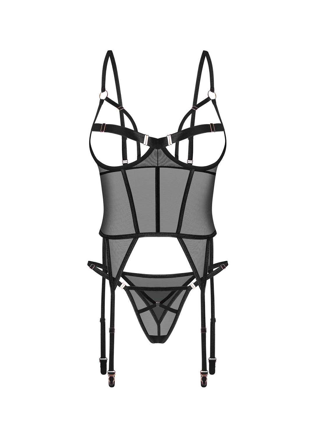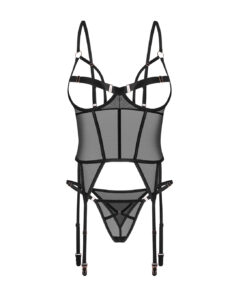 Se aprecia a delicadeza do minimalismo aliado a detalhes sofisticados, o Bustier Euridia foi feito para si. Este conjunto irresistível destaca-se pelo seu design único, conjugando tecido preto transparente, elementos metálicos sofisticados e fitas elásticas sedutoras. Ideal para quem quer exprimir a sua sensualidade com ousadia e elegância.