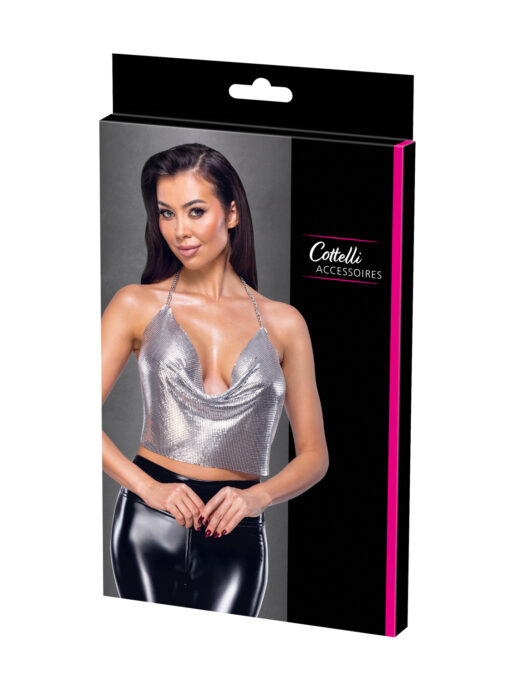 - Ajustabilidade Total: Equipado com uma corrente halterneck (que prende à volta do pescoço) prateada e outra corrente ajustável sobre as costas descobertas, graças aos fechos de encaixe, este top pode ser adaptado para garantir um ajuste perfeito garantindo conforto sem comprometer o estilo.