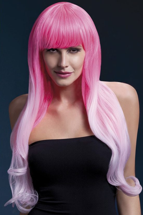 Peruca sintética de alta qualidade. Leve, confortável e toque realista, em 2 tons de rosa.
