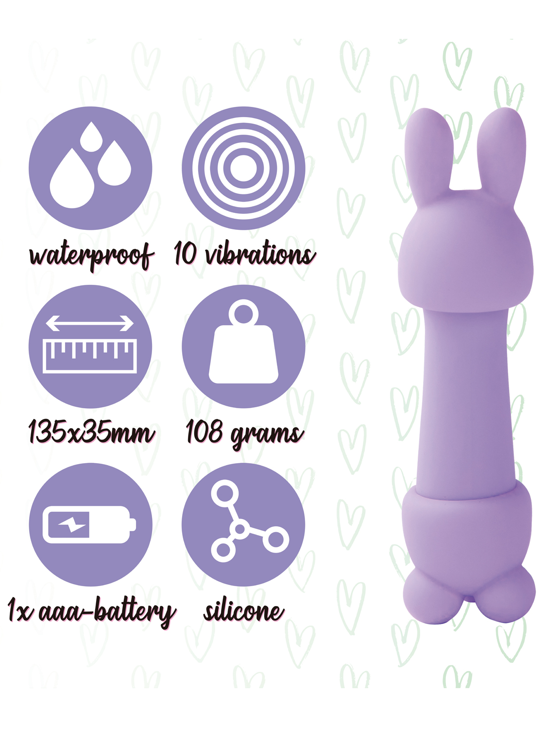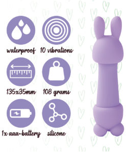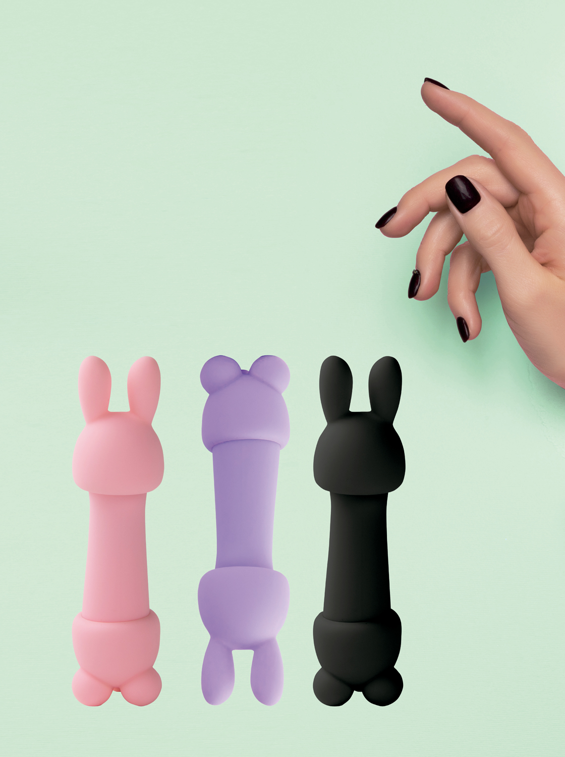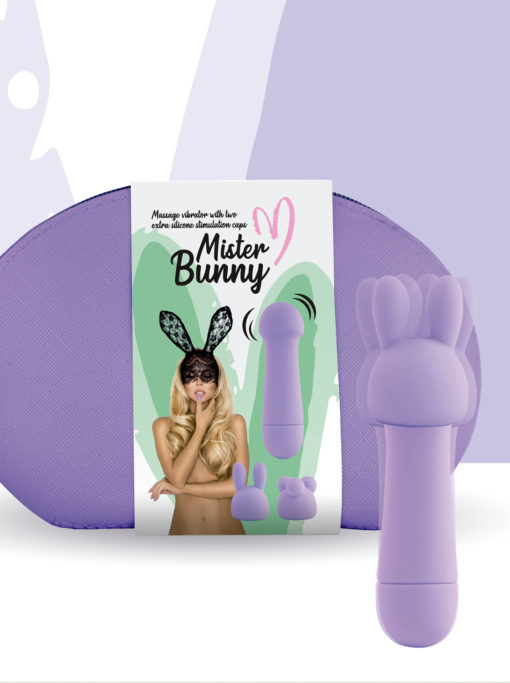 Mister Bunny, é um pequeno estimulador com 2 cabeças diferentes, para estimular as diferentes zonas erógenas por todo o corpo.