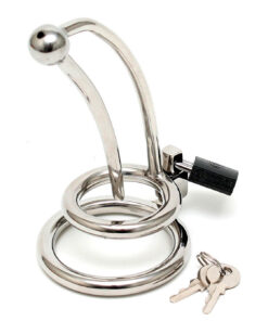 Para quem quer levar os seus jogos de castidade ao próximo nível, esta jaula de castidade limita a vontade de ter uma ereção com um plug uretral oco!
