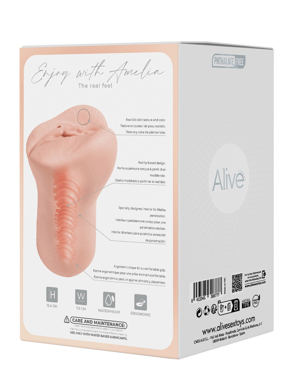 Extremamente realista em cada detalhe, o masturbador Amelia da Alive, tem impressionantes características exteriores de deixar água na boca, e um túnel apertado com estrias para proporcionar uma sensação real!