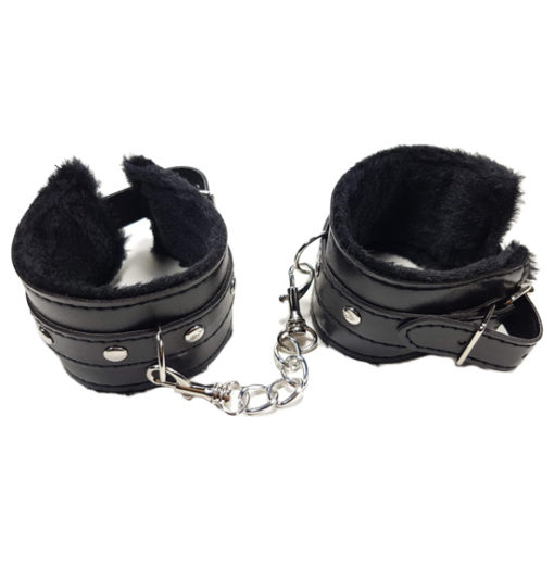Ajusta por fivela e as algemas prendem uma à outra por mosquetão.