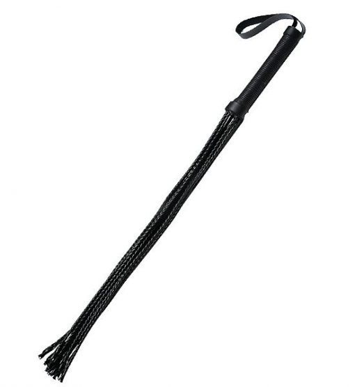 – Chicote negro fabricado em poliéster, com 74cm de comprimento total.