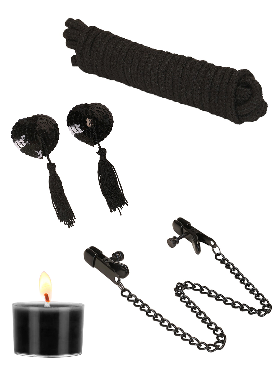 1 x grampos de mamilo com corrente. Comprimento total 48 cm.