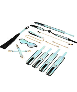 O conjunto de bondage de 8 peças Vivid Sorairo da Liebe Seele tem uma linda cor azul metálica com peças e acessórios metálicos dourados. Um conjunto muito especial para principiantes e peritos – exclusivo e de altíssima qualidade!