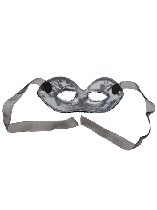 om estrutura moldada de plástico transparente, esta máscara está forrada com tecido rendado e elegante e ajusta atrás com laço de organza.