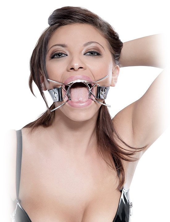 – Quando aberto não é suficientemente aberto, esta mordaça aranha resolverá a questão! Tem argola de metal e 4 pernas metálicas que impedirão a boca de fechar para que possa introduzir o que lhe apetecer.