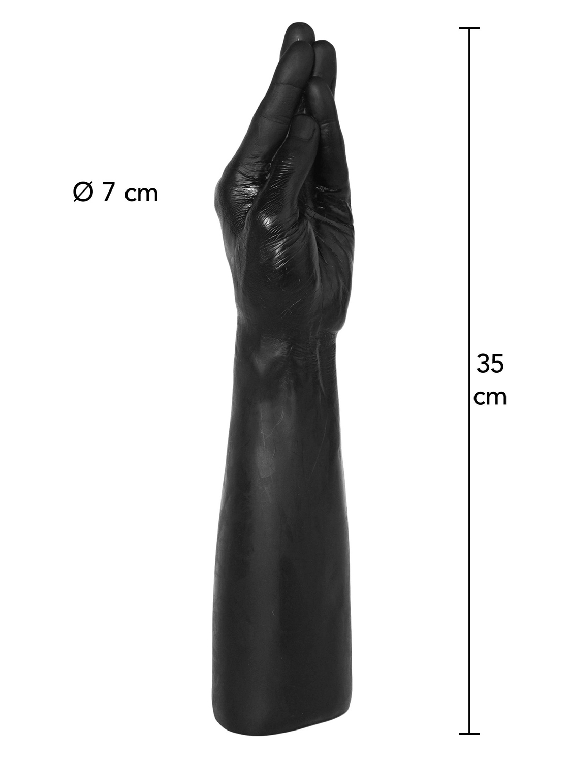 Fabricado em PVC suave e super flexível, com formato de mão fechada com os dedos esticados, tem uma base larga para maior conforto e segurança e garante muita emoção durante a utilização.