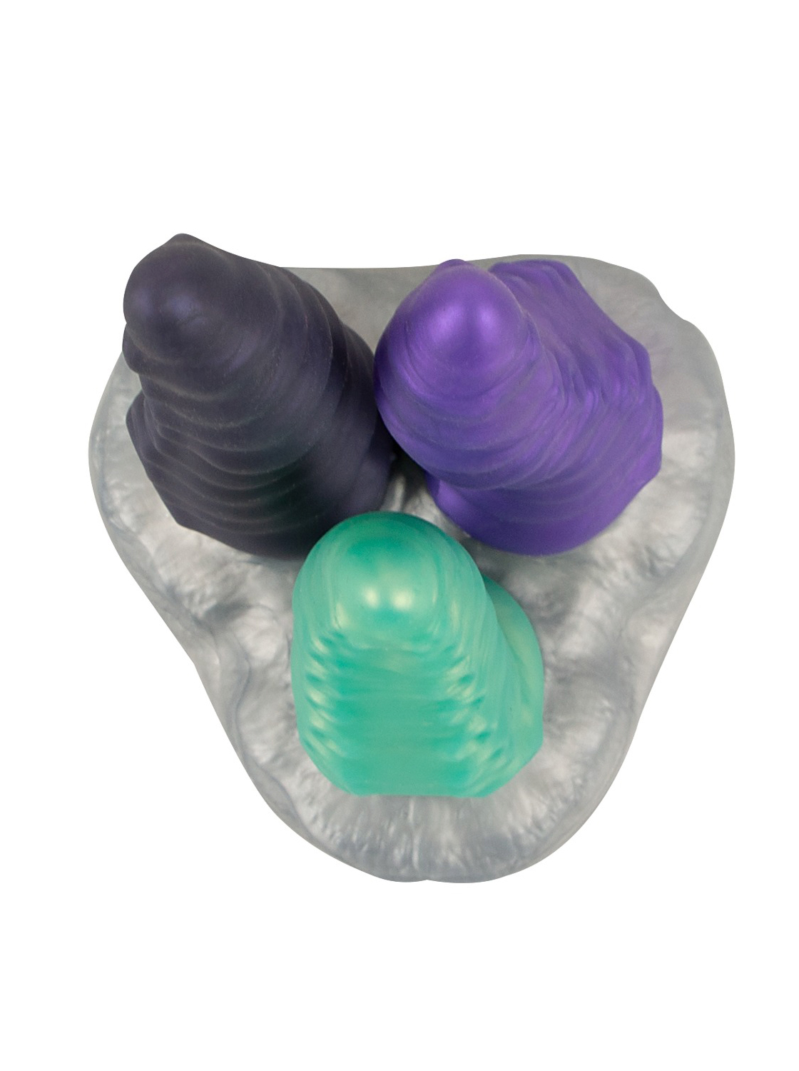 - Cada dildo tem extremidade comedida para facilitar a inserção.