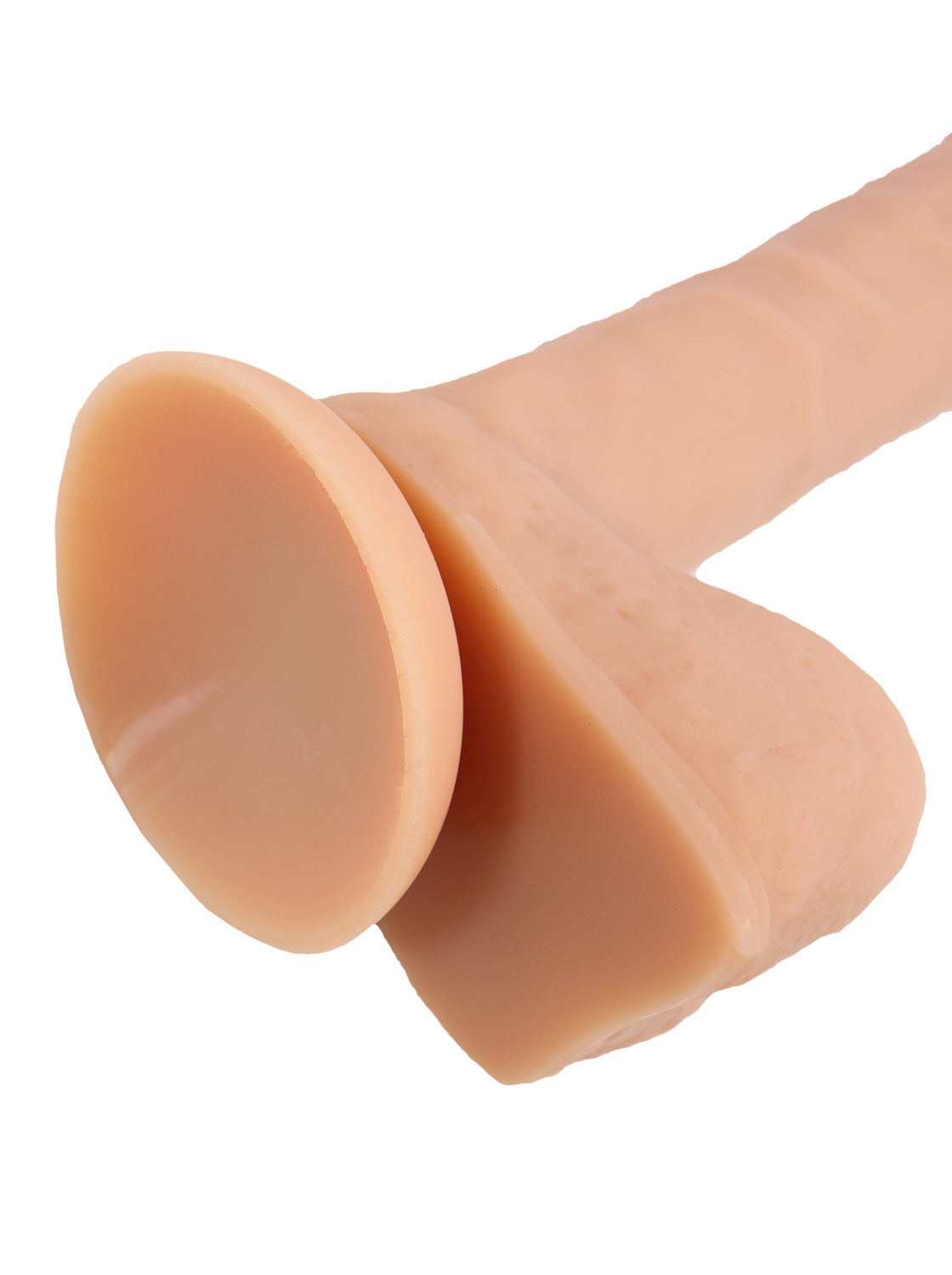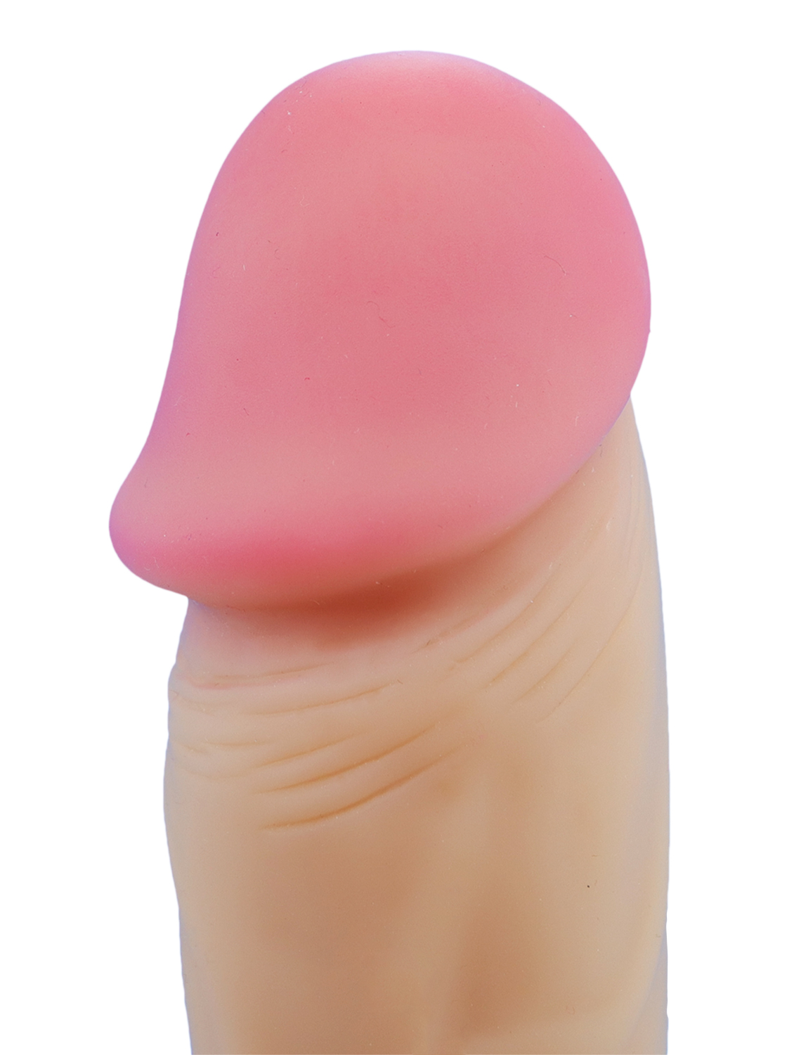 Possível de beliscar graças ao fabrico com duas camadas destintas, não foram esquecidos os testículos e a base de ventosa, que o permite colar a qualquer superfície plana para que possa brincar mãos livres.