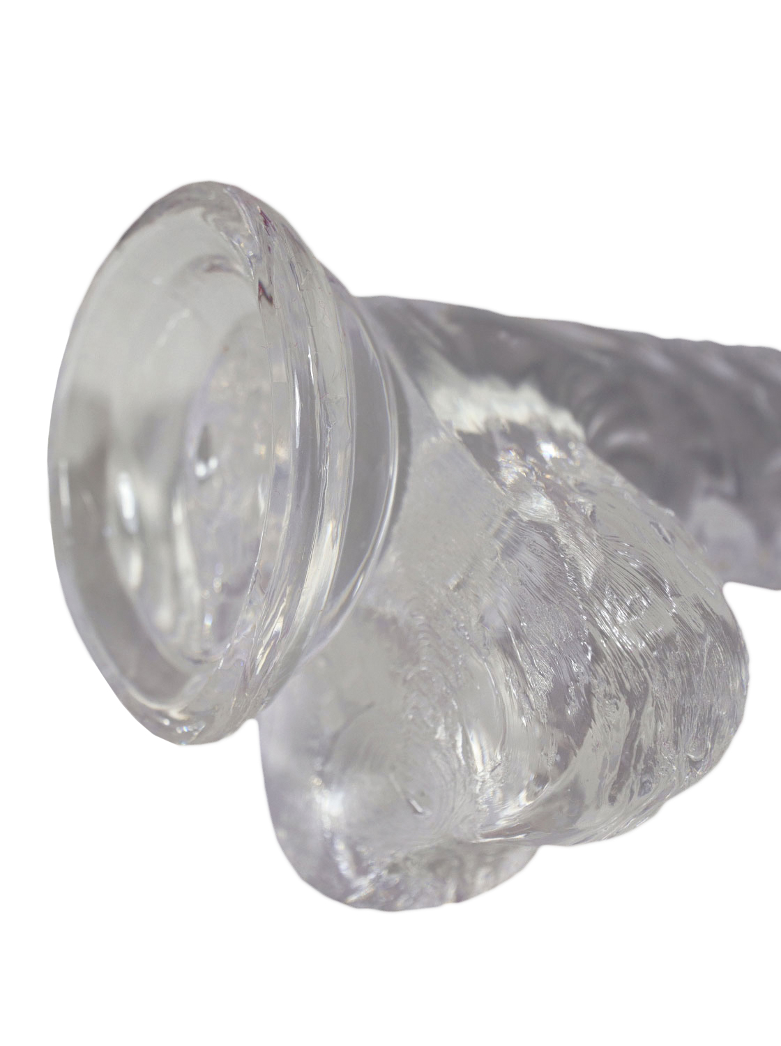 Flexível e transparente com a glande e as veias salientes, este dildo destaca uma potente base de ventosa que lhe permite ser colado a qualquer superfície plana para que possa brincar em modo mãos livres.