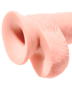 Tem todos os detalhes de um pénis real, com as veias e a glande salientes, e tem também um par de testículos que aconchegará a entrada do ânus ou da vagina, numa penetração mais profunda.