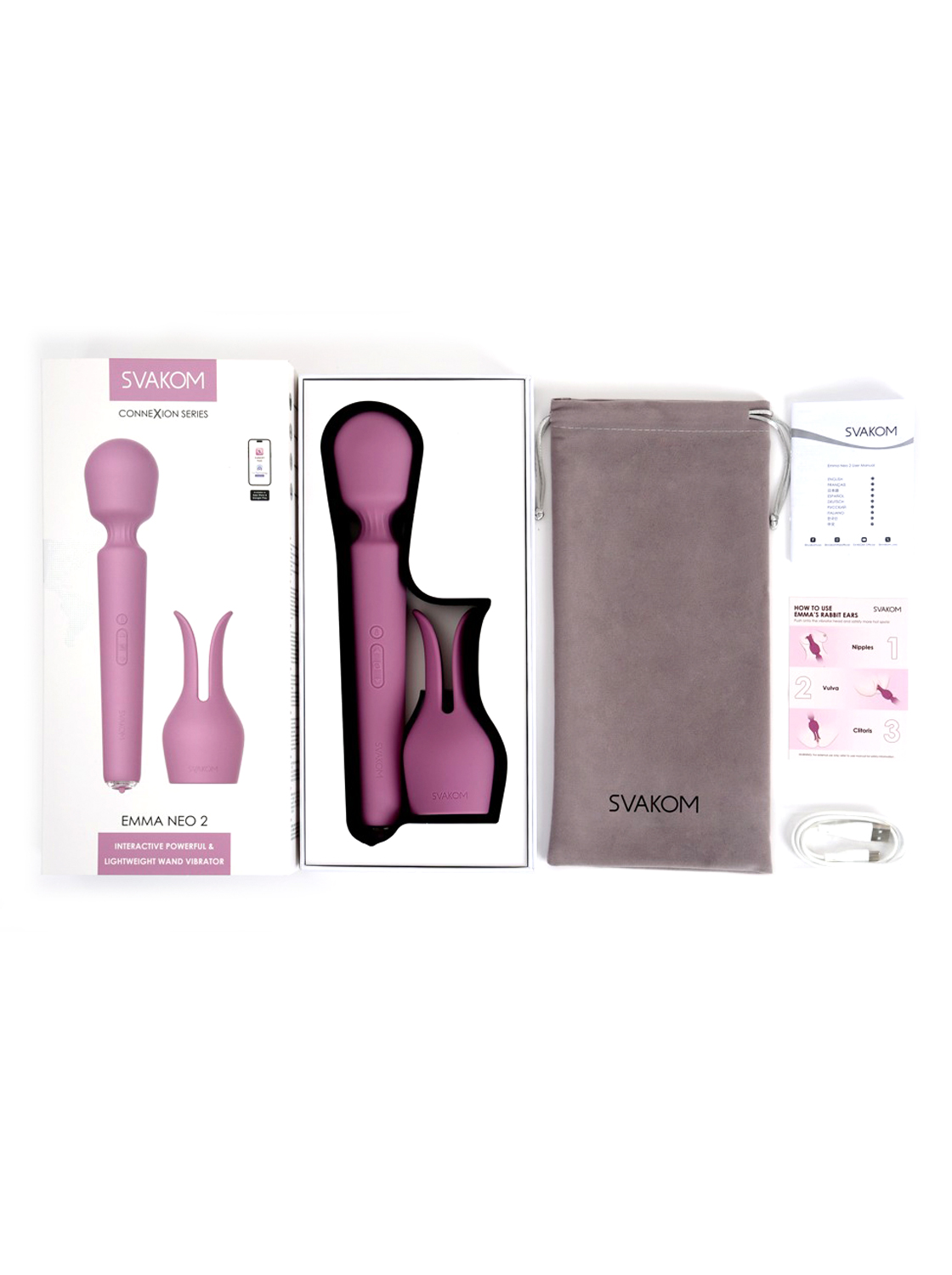 O Emma Neo 2 oferece vibrações intensas e profundas, surpreendentemente silenciosas, que vão diretamente da cabeça suave do aparelho até às suas zonas externas de prazer. Graças à sua excelência na engenharia, praticamente não se sente vibração no cabo, permitindo um conforto superior mesmo em sessões prolongadas.